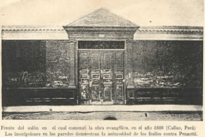 Julio, llegan al Callao procedente de Uruguay. Alquila un local y realiza el primer servicio religioso, celebrado con la asistencia de la familia de Penzotti y el matrimonio Noriega (Manuel y Teresa).