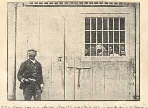 1890 – Enero, Penzotti viaja al sur del país, dejando encargada la congregación a los hermanos. Envió a Arancet e Illescas a Mollendo y él se fue a Arequipa. Los dos colportores escaparon milagrosamente de morir apedreados, mientras que a Penzotti lo llevaron a la cárcel, en la cual permaneció diecinueve días y predicando el Evangelio a los presos. Salió en libertad por orden del Presidente de la República, Don Andrés Avelino Cáceres.