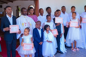 Au cours de la semaine sainte, l'église Bispo Escrivão Zunguze UMC a accueilli dix-neuf membres par le biais du baptême et de la confirmation (plusieurs d'entre eux sont représentés ci-dessous). En outre, le groupe de jeunes s'est rendu à une conférence sur la charge et a célébré l'augmentation du nombre de membres et l'élévation spirituelle lors de la communion et de l'adoration de Dieu.