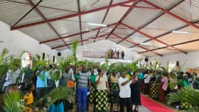 Le dimanche des Rameaux, dans la banlieue de Maputo, la capitale du Mozambique, les processions le long des routes se mêlent à celles de diverses confessions dans le quartier de Zimpeto, comme lors de l'entrée de Jésus-Christ à Jérusalem. Trois kilomètres plus loin, ils se mêlent à la charge pastorale. Dans un esprit de joie, la congrégation se joint aux chants de louange, brandit des feuilles de palmier et célèbre en disant : "Le maître vient, le maître vient, hosanna au plus haut des cieux".